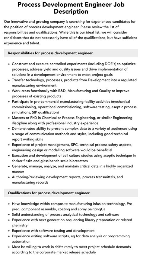 job description process development engineer